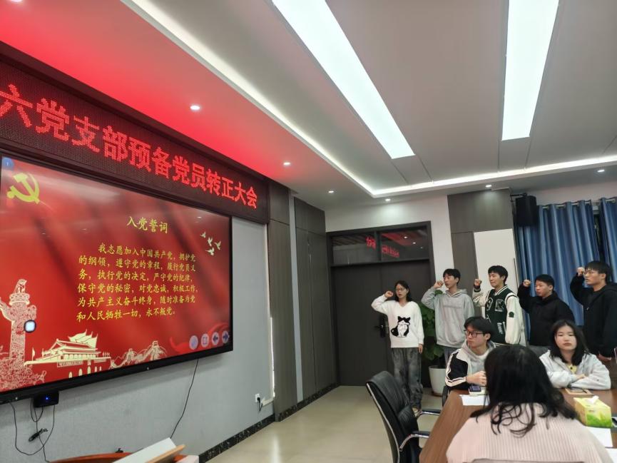 经支部大会充分讨论,本着公平、公正、公开的原则,全体正式党员以无记名投票方式进行表决,一致同意五名预备党员按期转为中共正式党员。在党旗的见证下,新转正的党员庄严宣誓,重温入党誓词,表达了为共产主义事业奋斗终身的坚定决心和对党的无限忠诚。